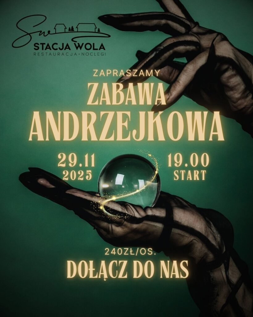 Szukasz pomysłu na niezapomniane Andrzejki w okolicach Nowego Sącza? Restauracja Stacja Wola zaprasza na wyjątkową zabawę andrzejkową, która odbędzie się 29 listopada 2025 roku o godzinie 19:00. To doskonała okazja, by spędzić wieczór w gronie przyjaciół, przy dźwiękach dobrej muzyki i w atmosferze, która łączy elegancję z radością wspólnej zabawy.