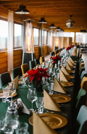 Elegancka zastawa, świąteczne dekoracje i subtelna muzyka stworzą wyjątkową atmosferę podczas kolacji — idealną zarówno dla firm, jak i spotkań w gronie najbliższych.
